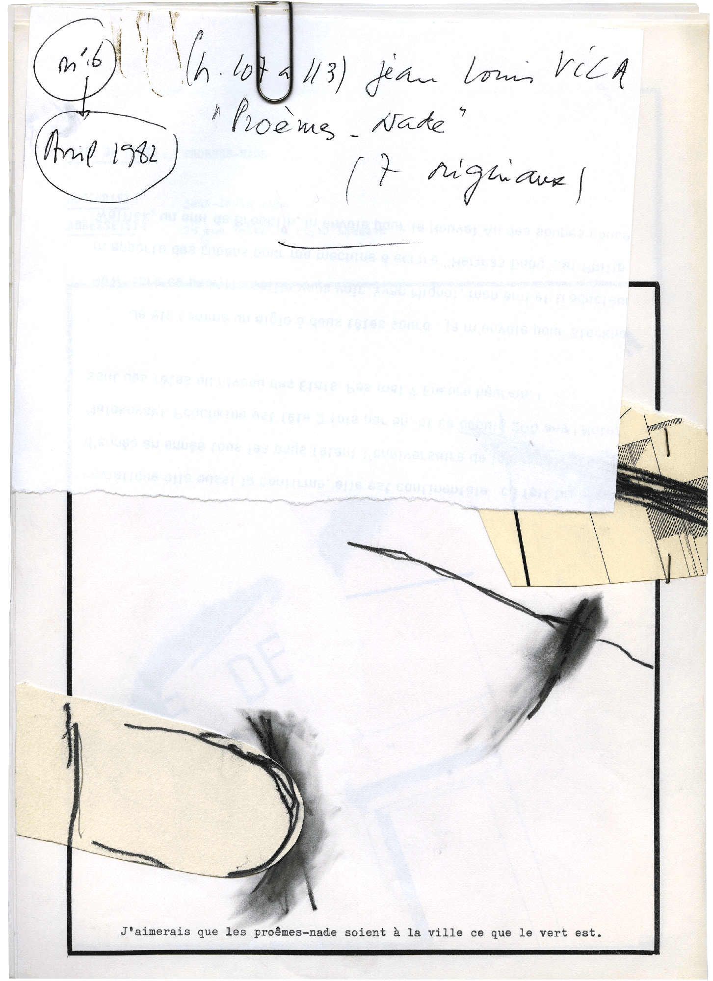 Imprimée sur du papier offset, simplement brochée, tirée à 500 exemplaires et vendue à un prix accessible à tous, la revue s’ouvrit à des poètes de tous horizons comme Dominique Fourcade, Joseph Guglielmi, Mathieu Bénezet, Christian Guez-Ricord, Olivier Cadiot, Hubert Lucot ou encore John Ashbery et Haroldo de Campos, mais aussi à des plasticiens comme Christian Boltanski, Jean-Pierre Pincemin ou Annette Messager.