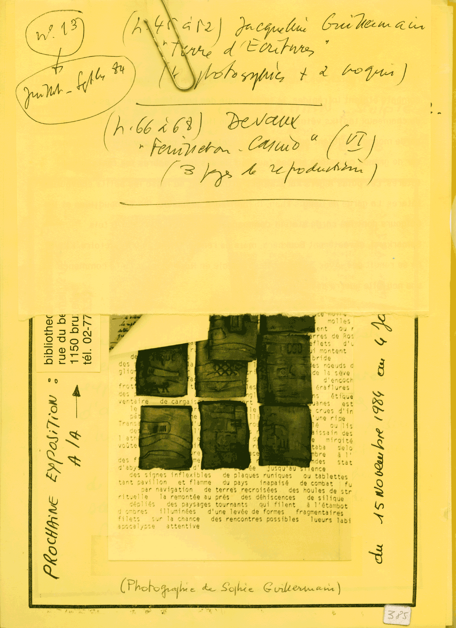 L’utilisateur trouvera dans le MENU du site un accès à l’ensemble de l’archive des documents originaux fournis par les artistes ainsi qu’une fonction PDF/PRINT qui permet de générer un document à conserver ou imprimer.