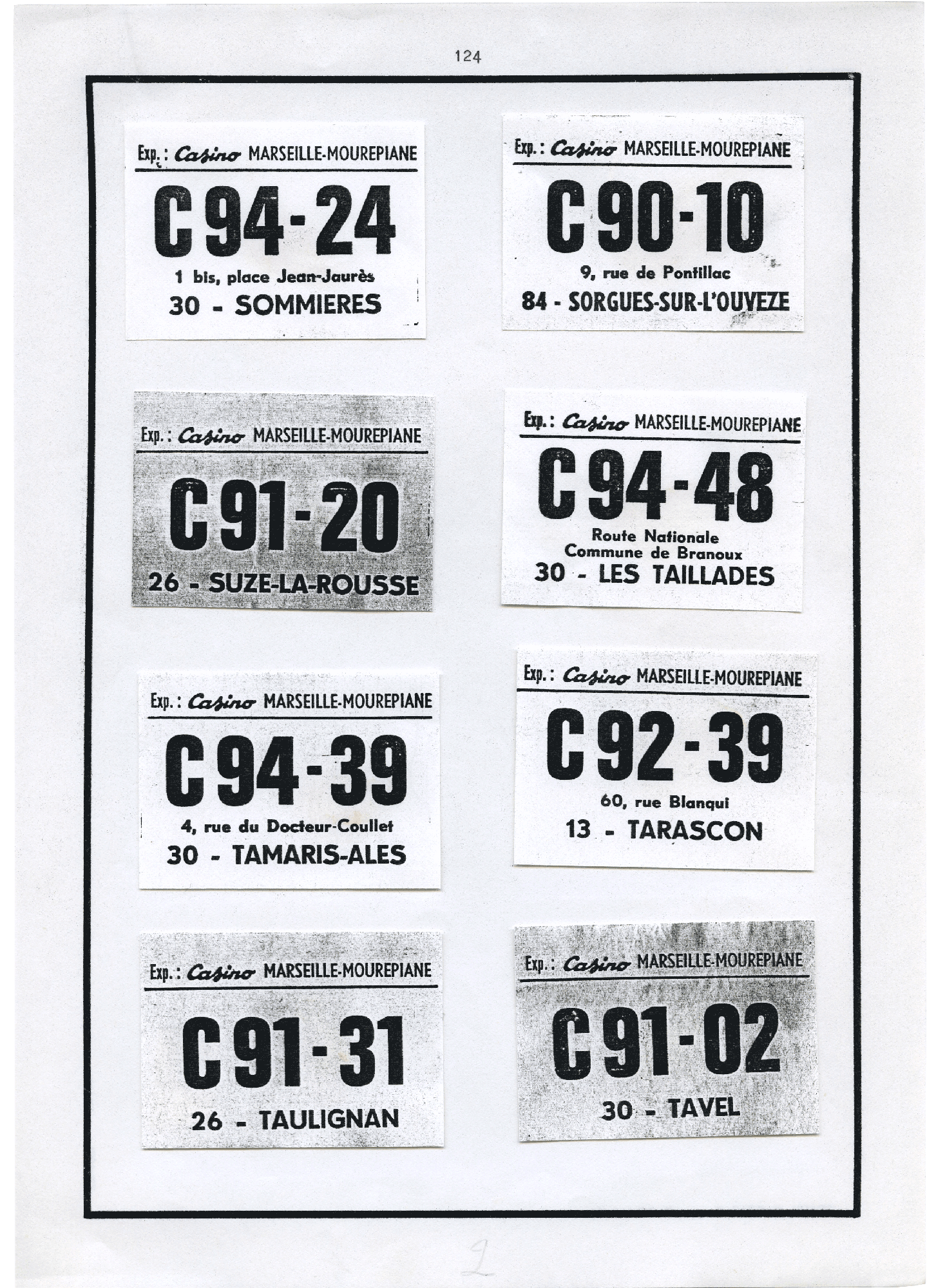 2 feuilles A4 – 21 x 29,7 cm. Collages, 14 étiquettes photocopiées.