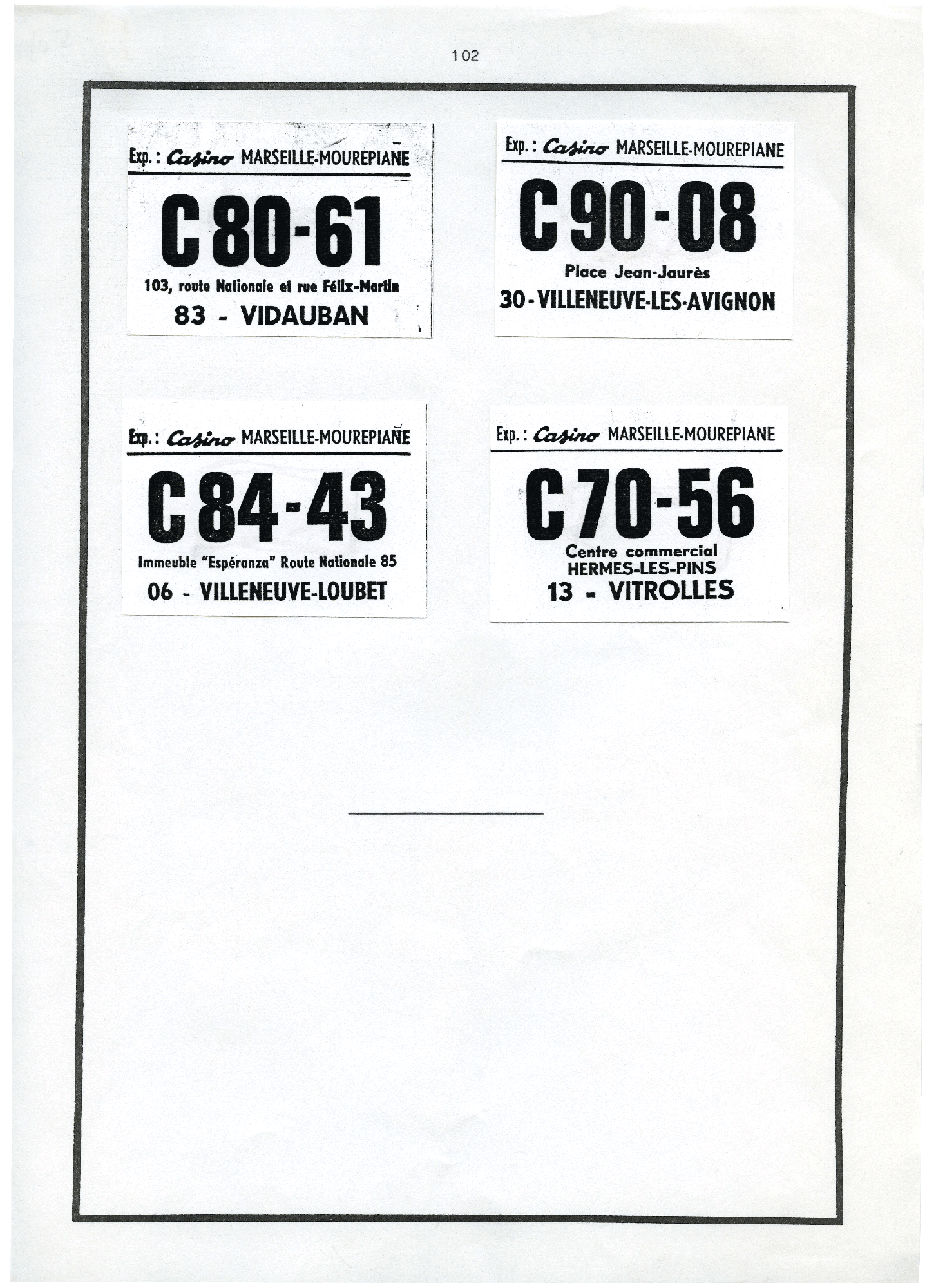 3 feuilles A4 – 21 x 29,7 cm. Collages. 22 étiquettes photocopiées.
