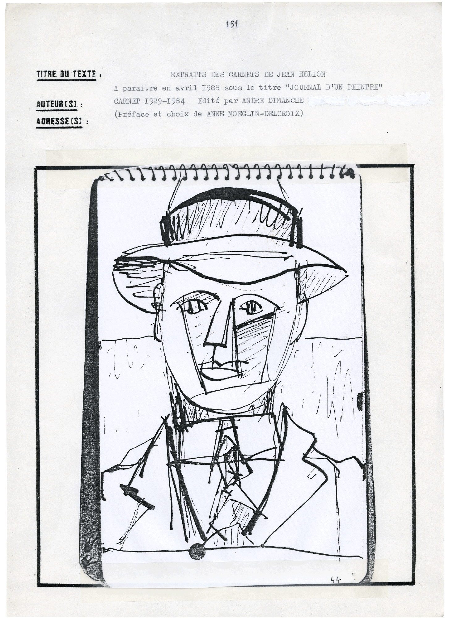 EXTRAITS DES CARNETS DE JEAN HELION