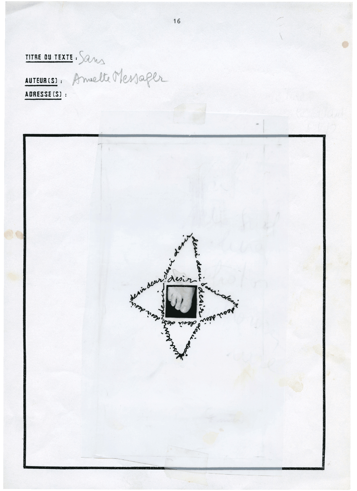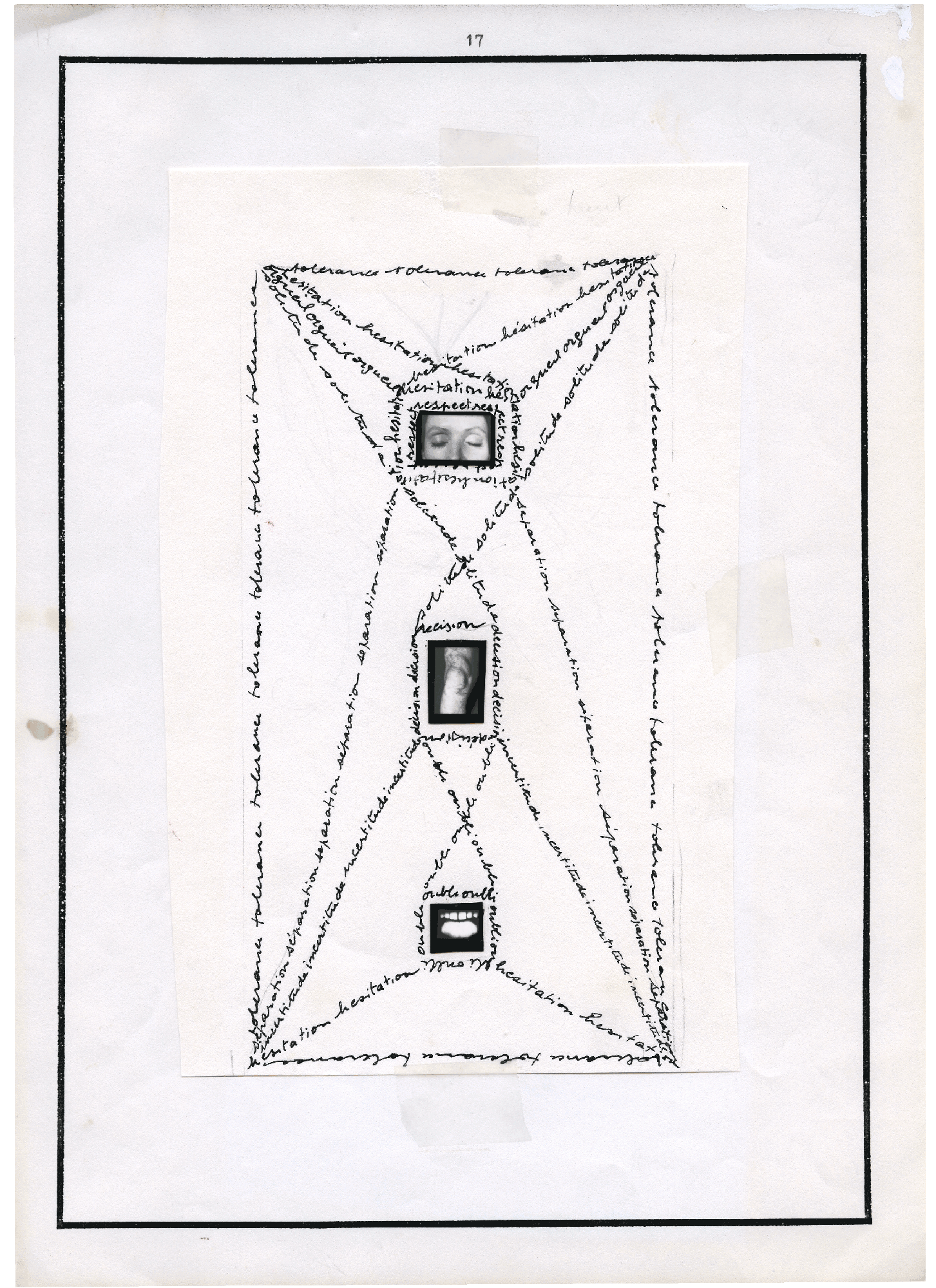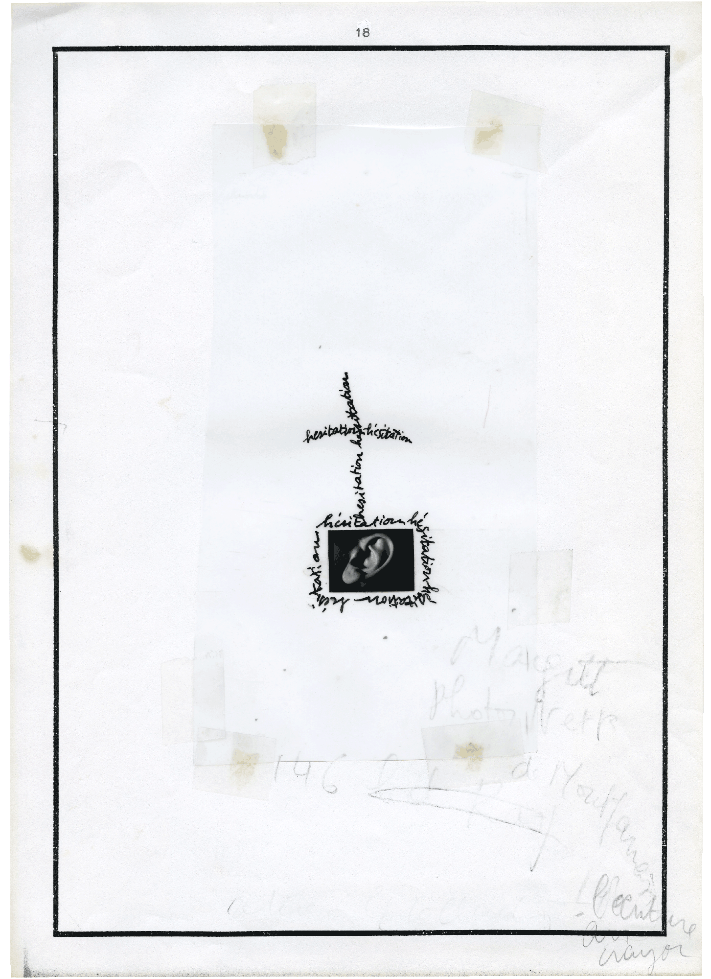 6 feuilles A4 – 21 x 29,7 cm. Collages. Photographies, dessins, textes.