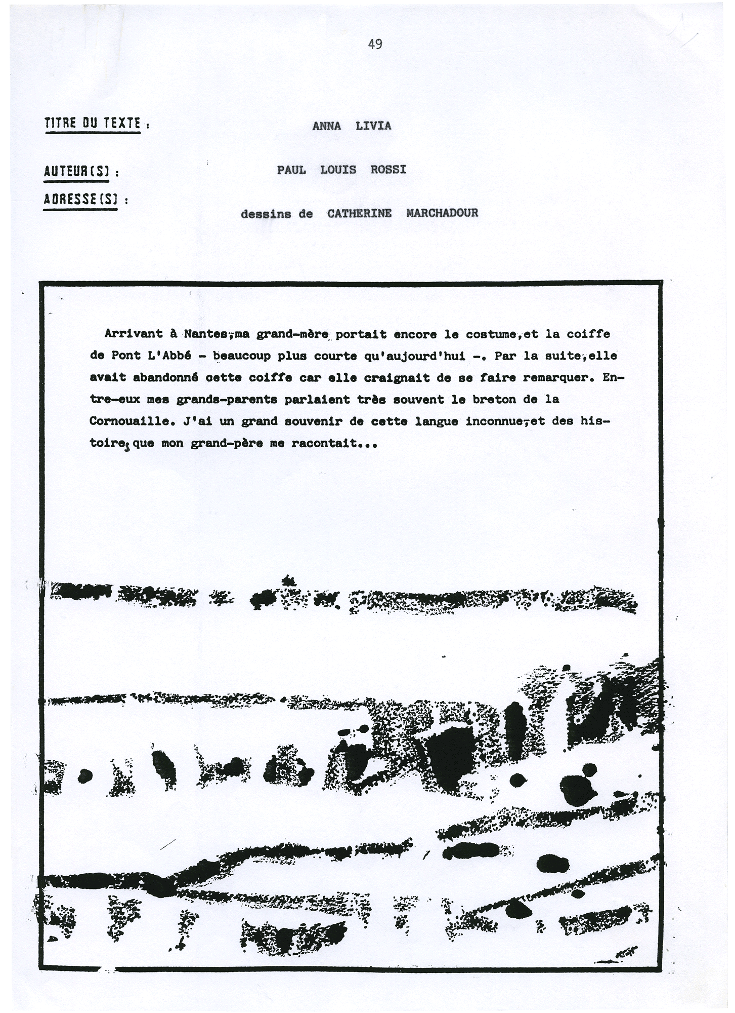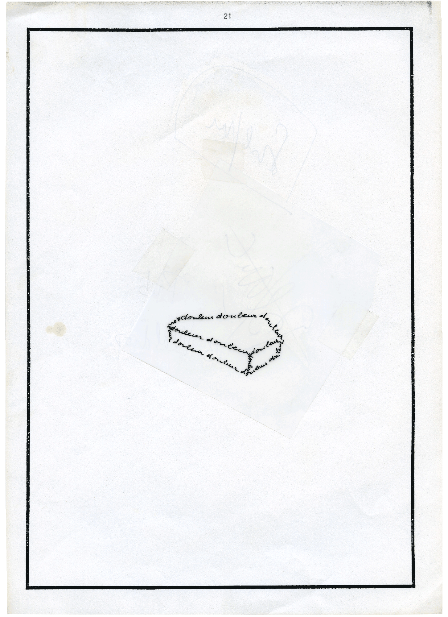 7 feuilles A4 – 21 x 29,7 cm. Dessins et textes dactylographiés.