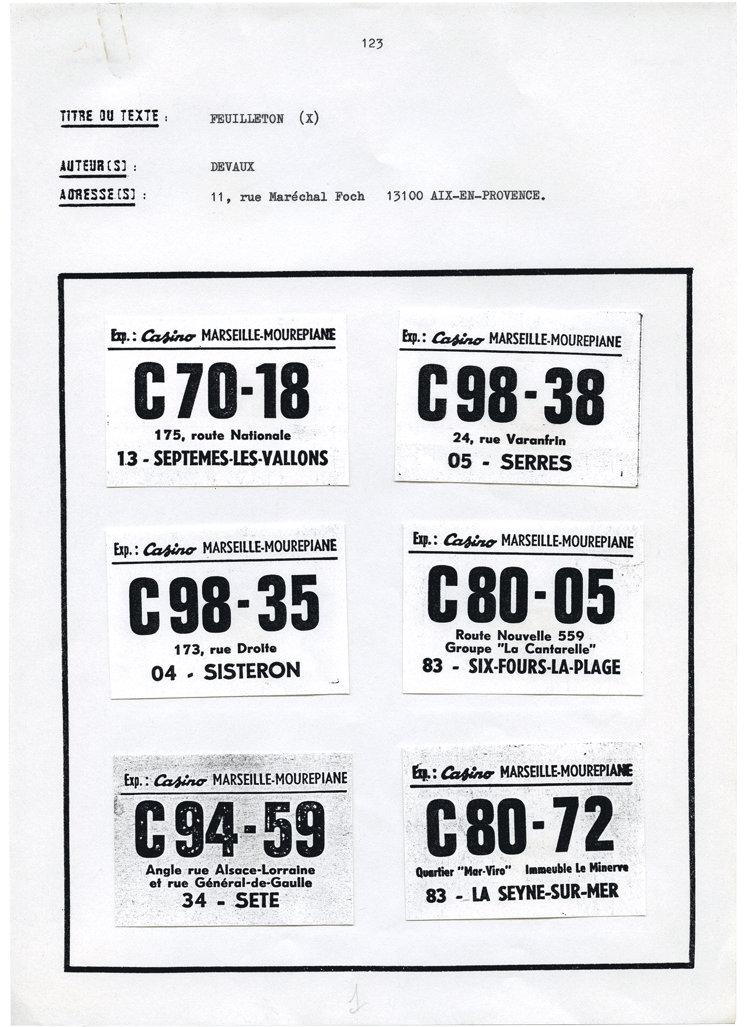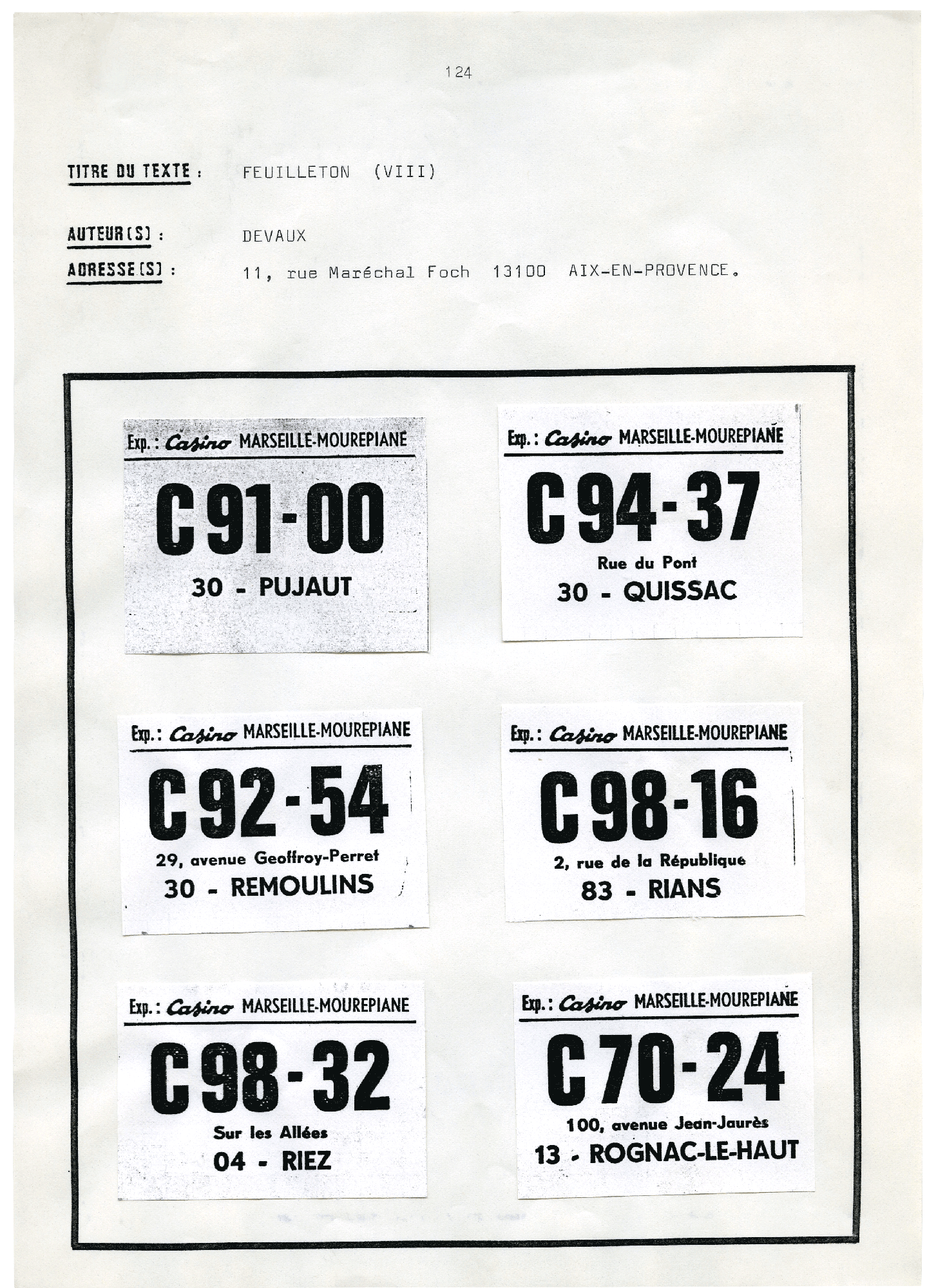 En mai 1983, sous le nom de François Devaux, il publie « (elle n’est plus qu’une morte) » aux Éditions Manicle dirigée par Nanni Balestrini.