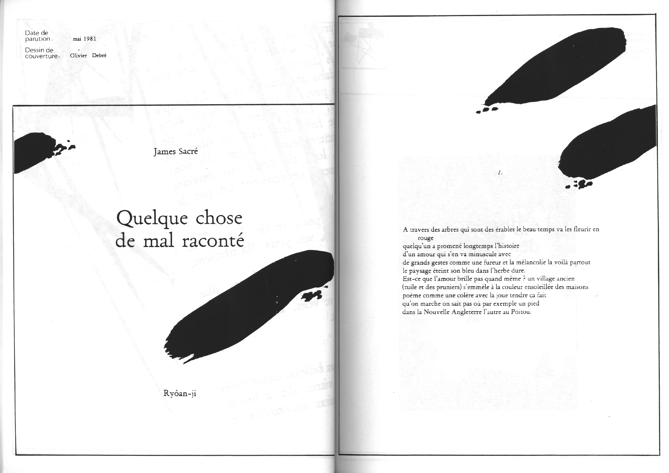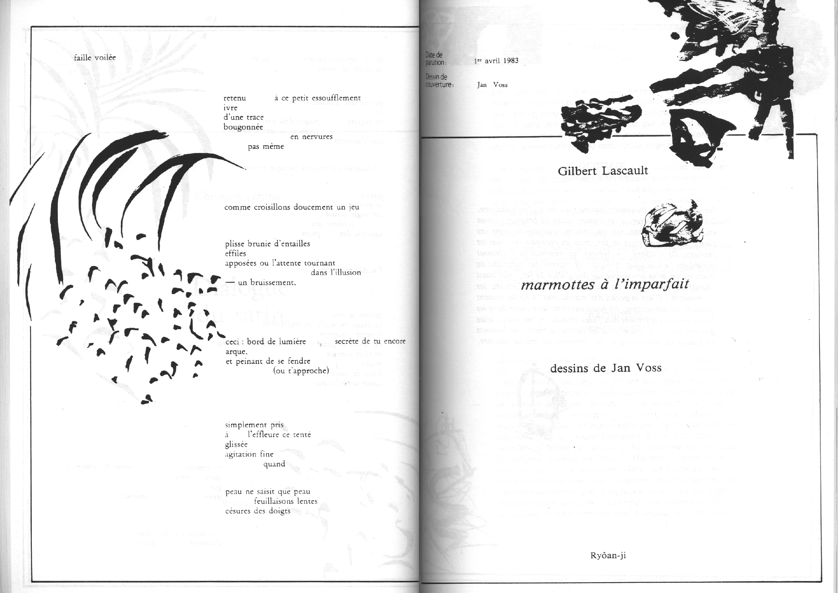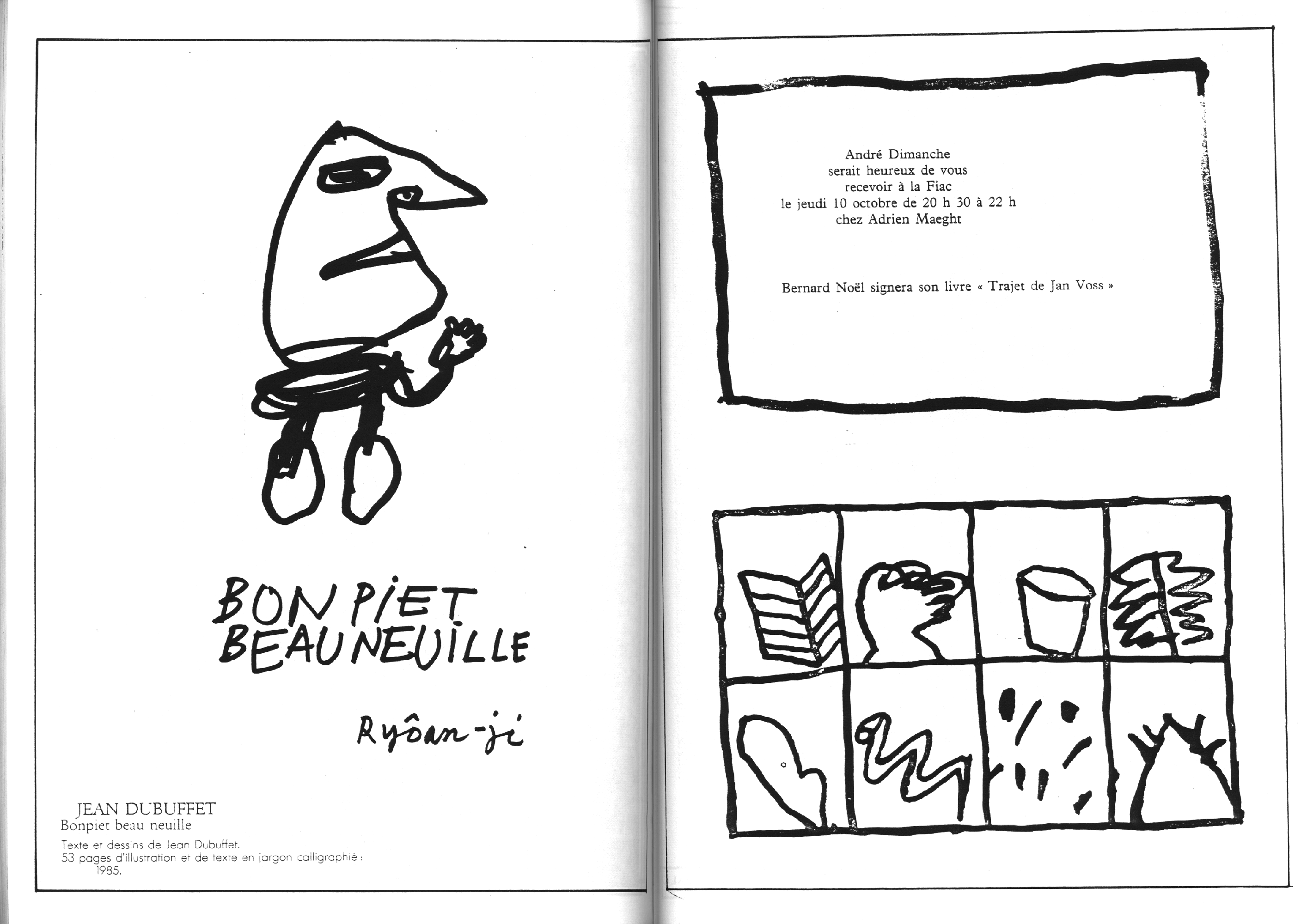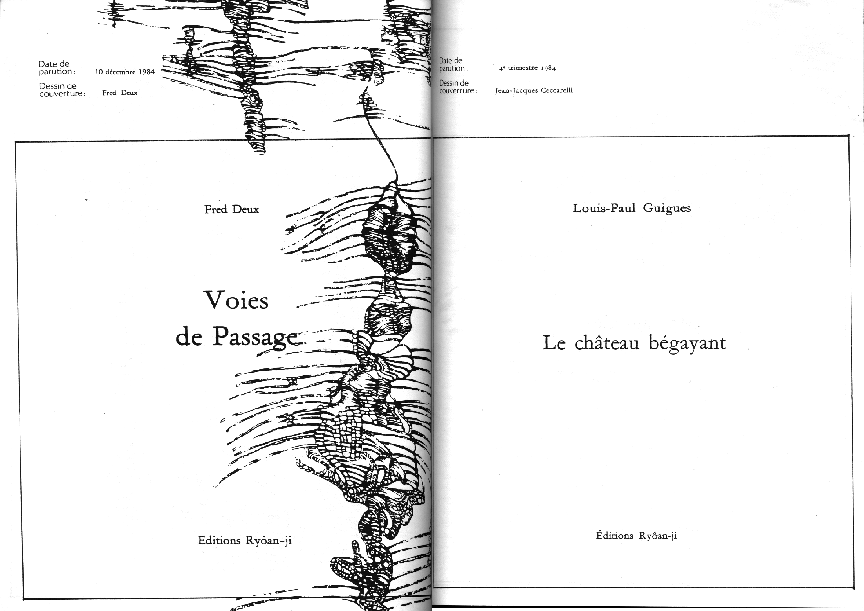 Catalogue d’exposition, numéro spécial de la revue Banana Split. Introduction de Marc le Bot – réunion de Ryoan-Ji et Banana Split, oeuvres de Jean-Jacques Ceccarelli, Olivier Debré, Jean Degottex, Fred Deux, Pierre Klossowski, Bernard Moninot, Roman Opalka et Jan Voss. In-4 (295×210), broché, 85 pages papier machine.