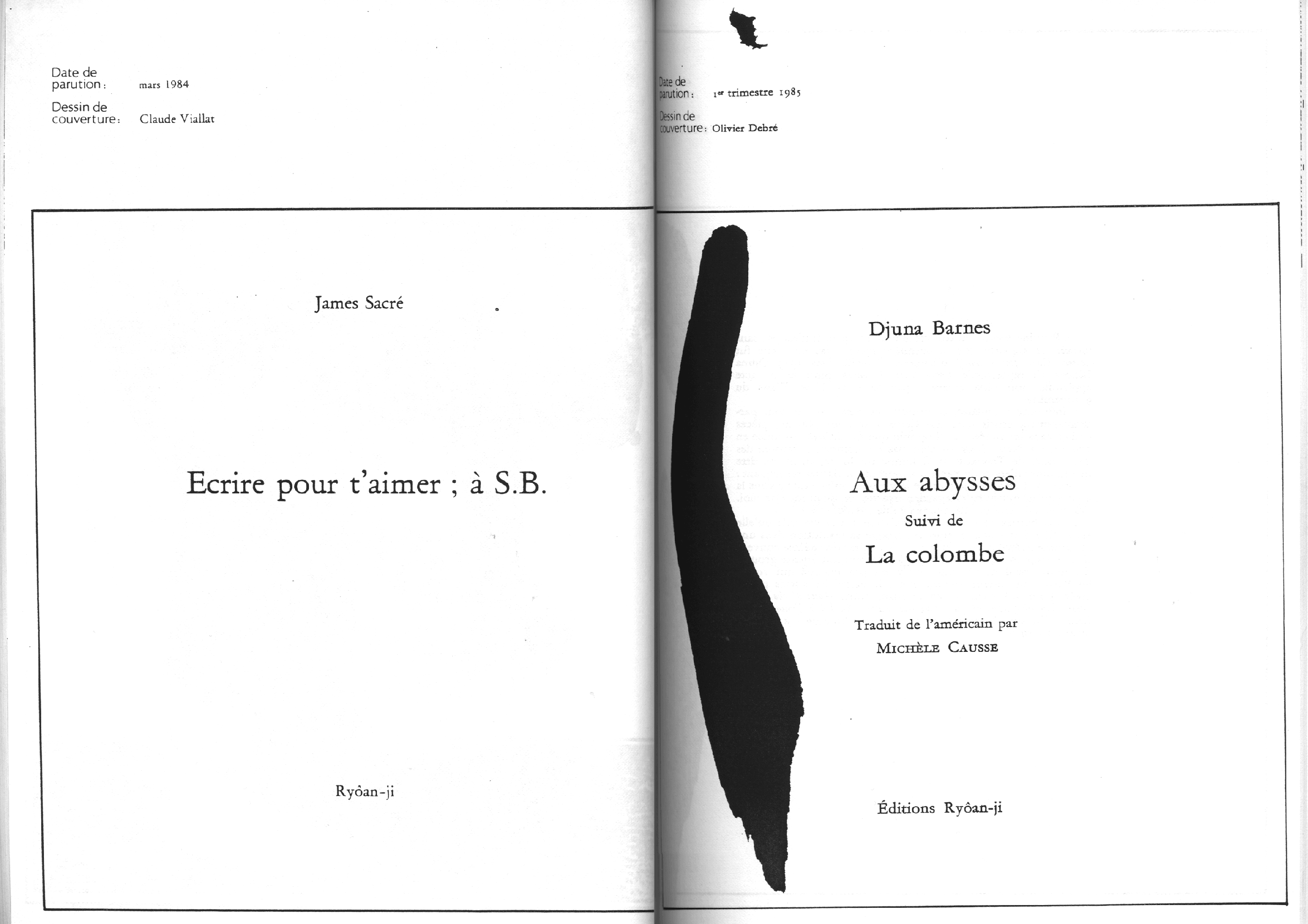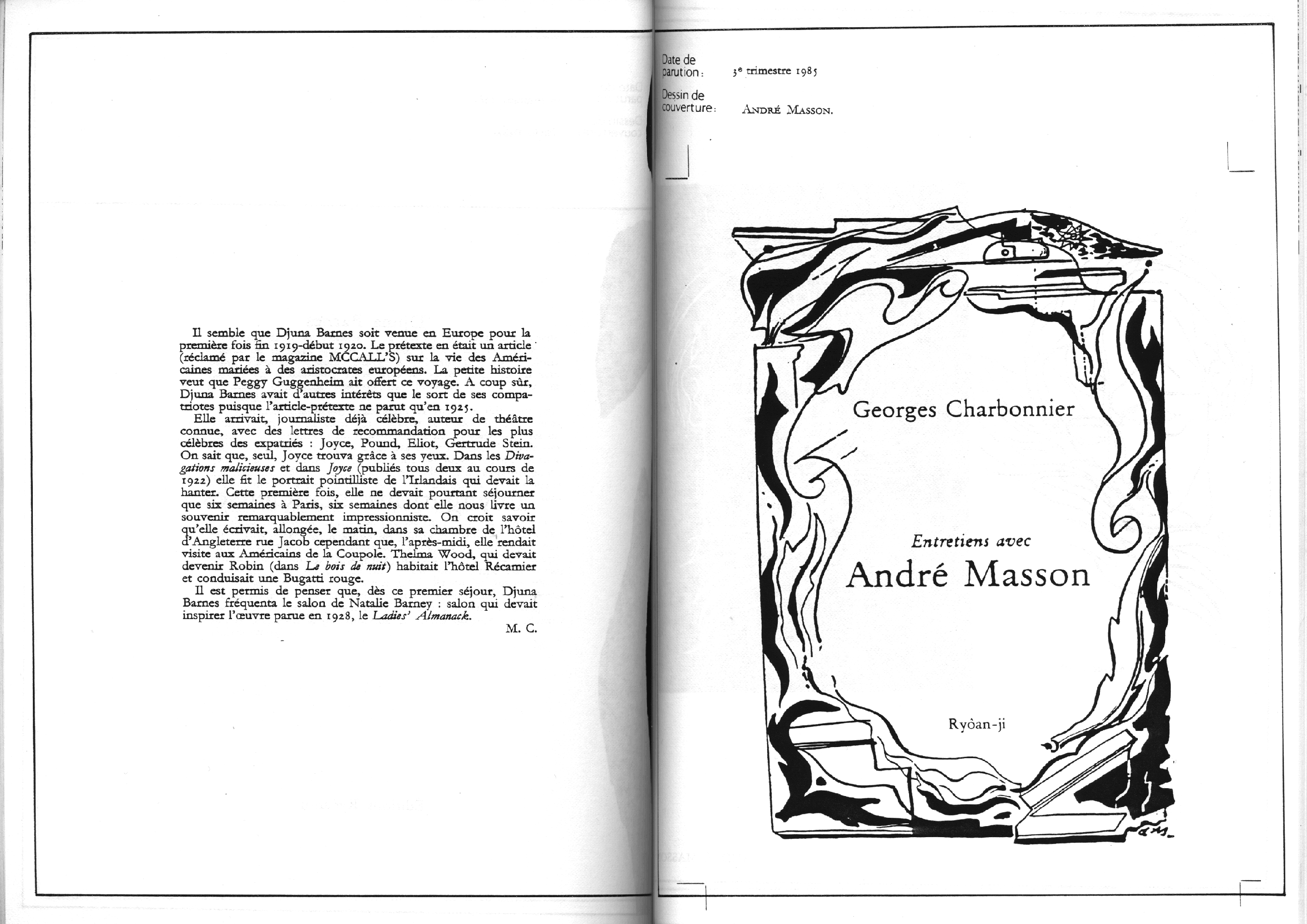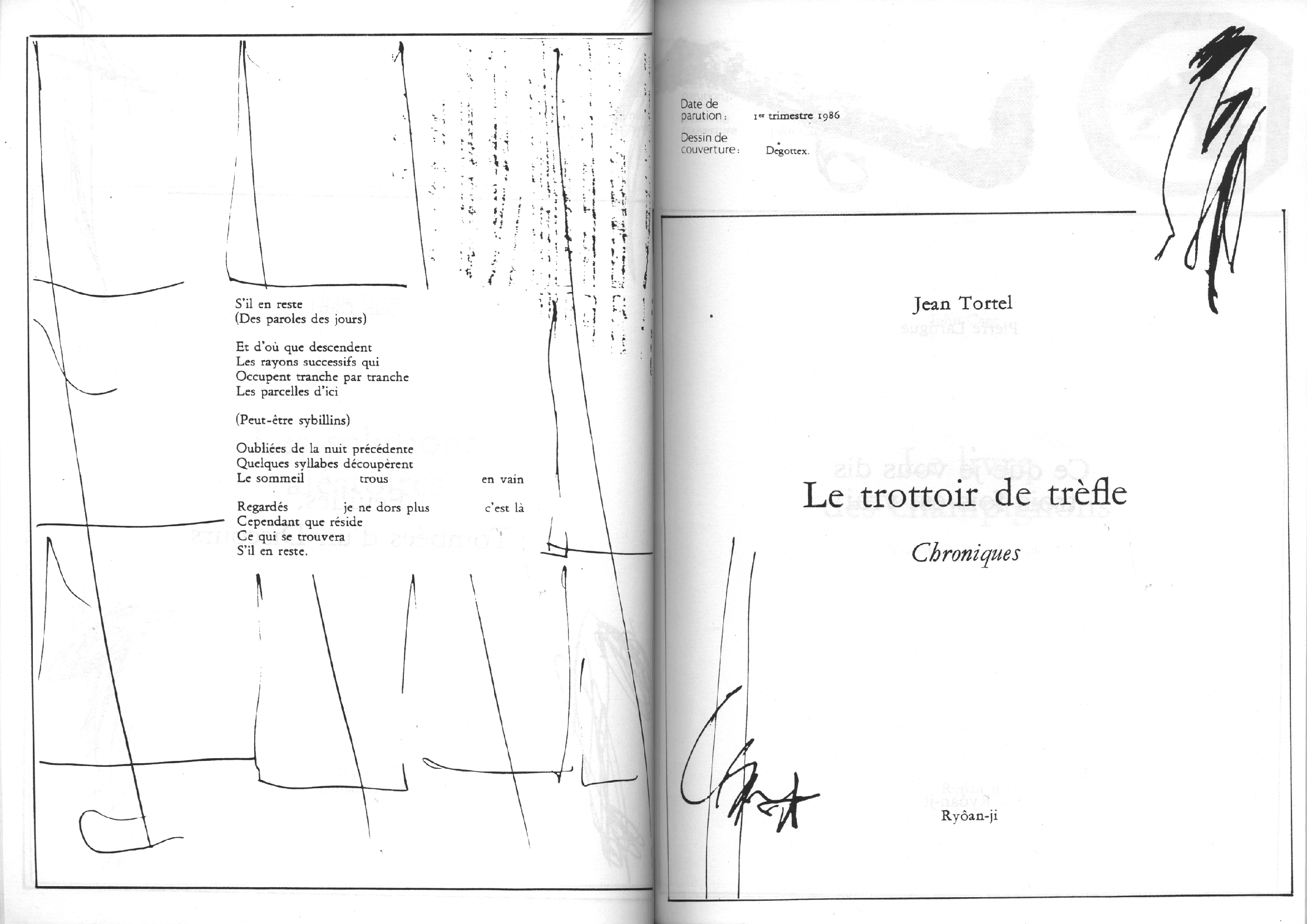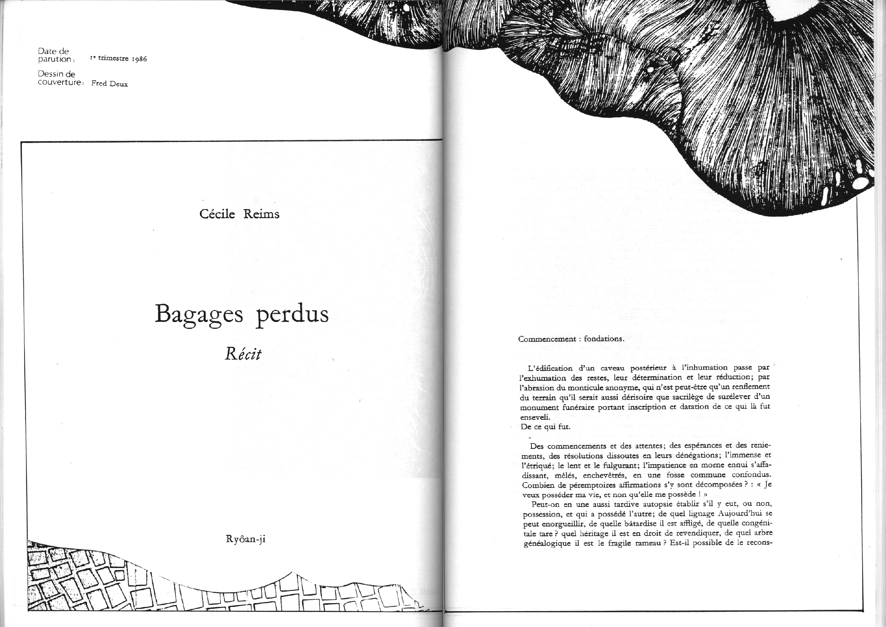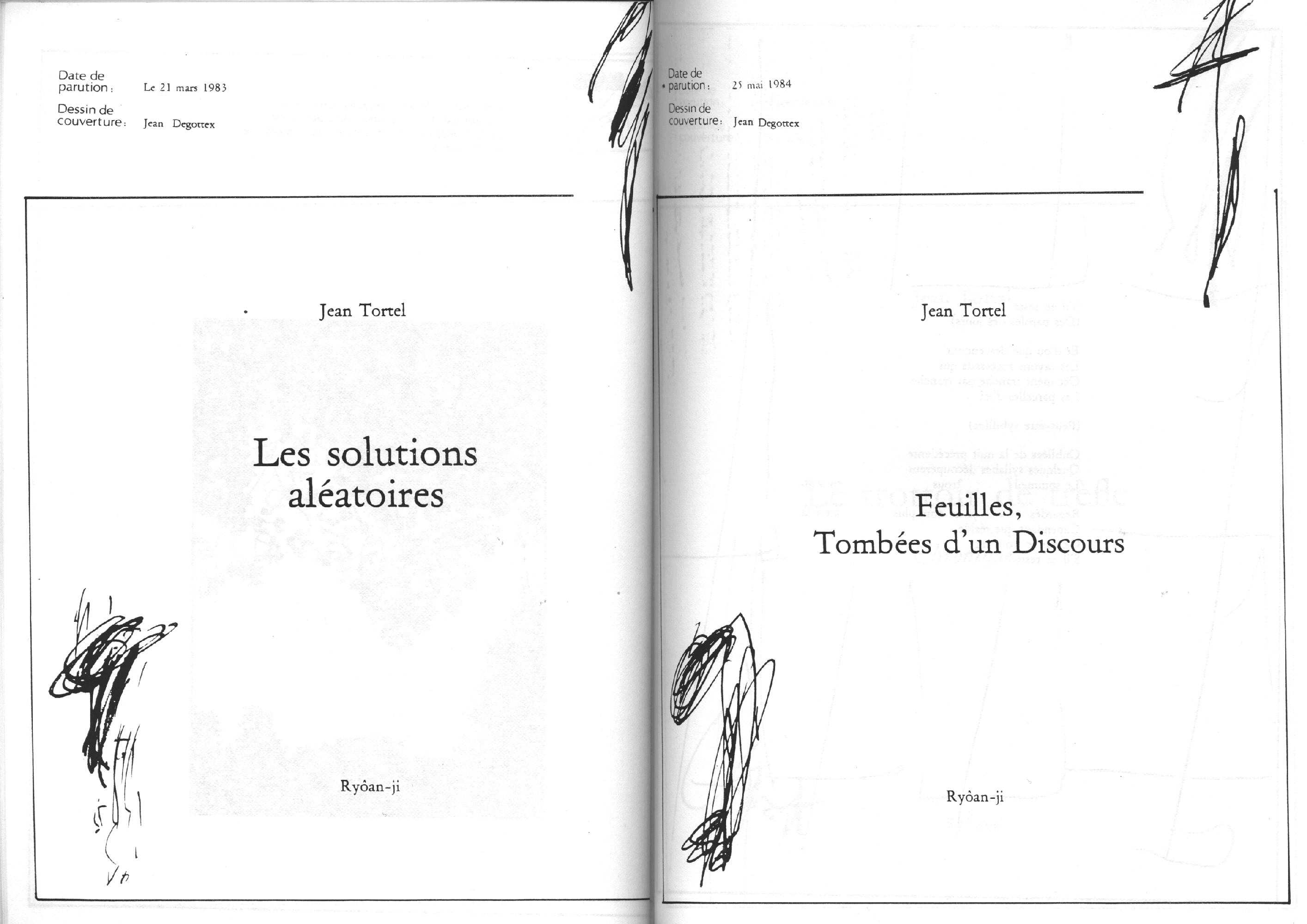 Catalogue d’exposition, numéro spécial de la revue Banana Split. Introduction de Marc le Bot – réunion de Ryoan-Ji et Banana Split, oeuvres de Jean-Jacques Ceccarelli, Olivier Debré, Jean Degottex, Fred Deux, Pierre Klossowski, Bernard Moninot, Roman Opalka et Jan Voss. In-4 (295×210), broché, 85 pages papier machine.