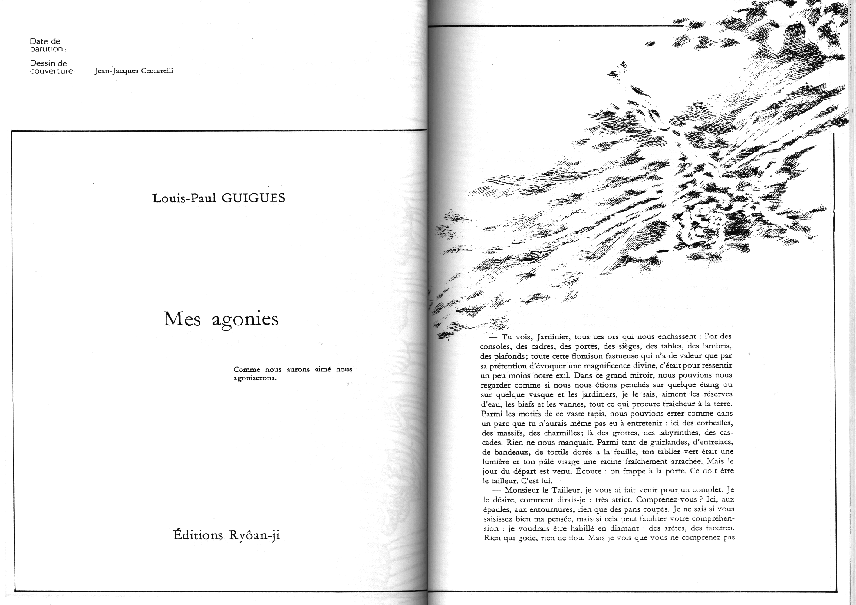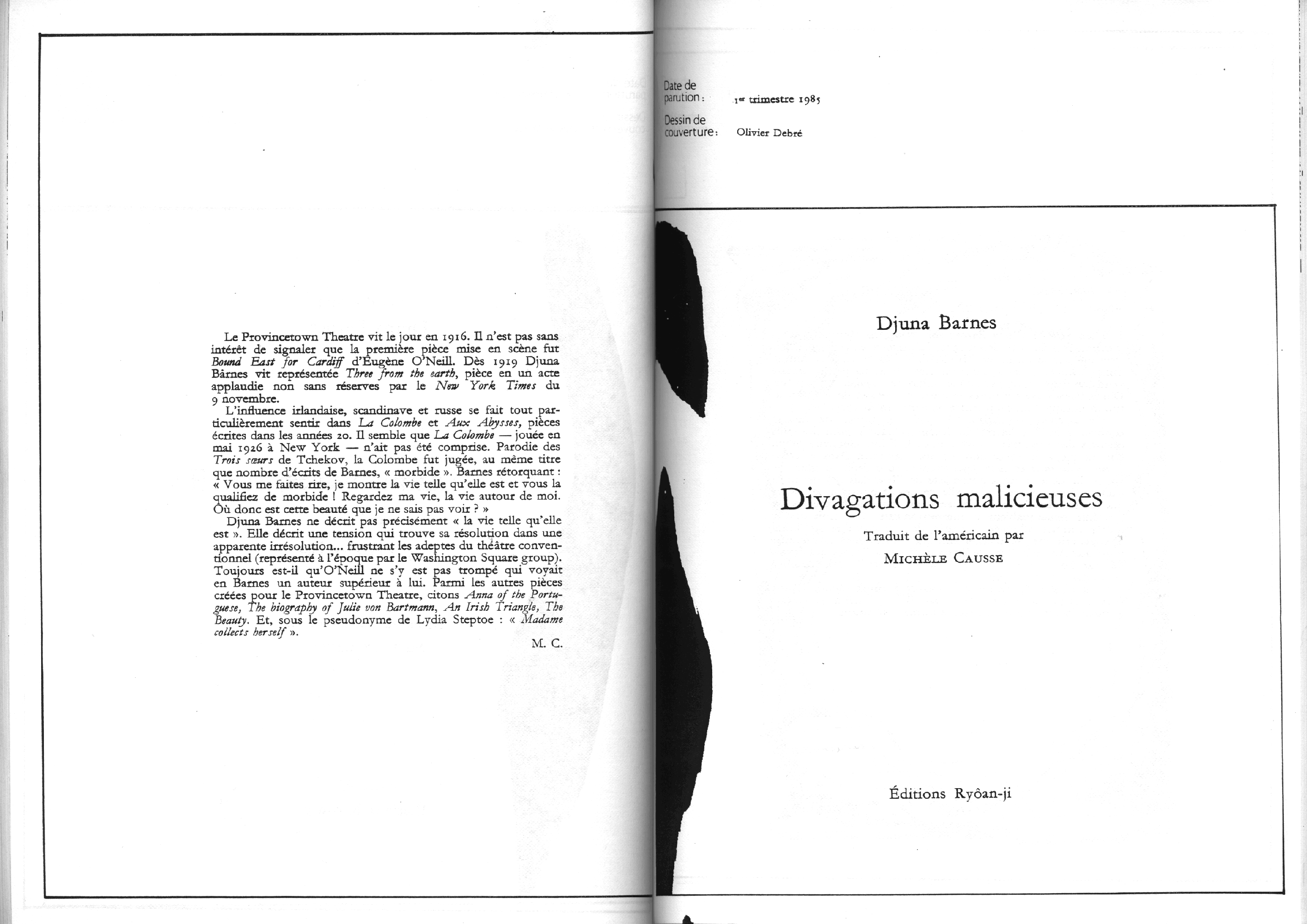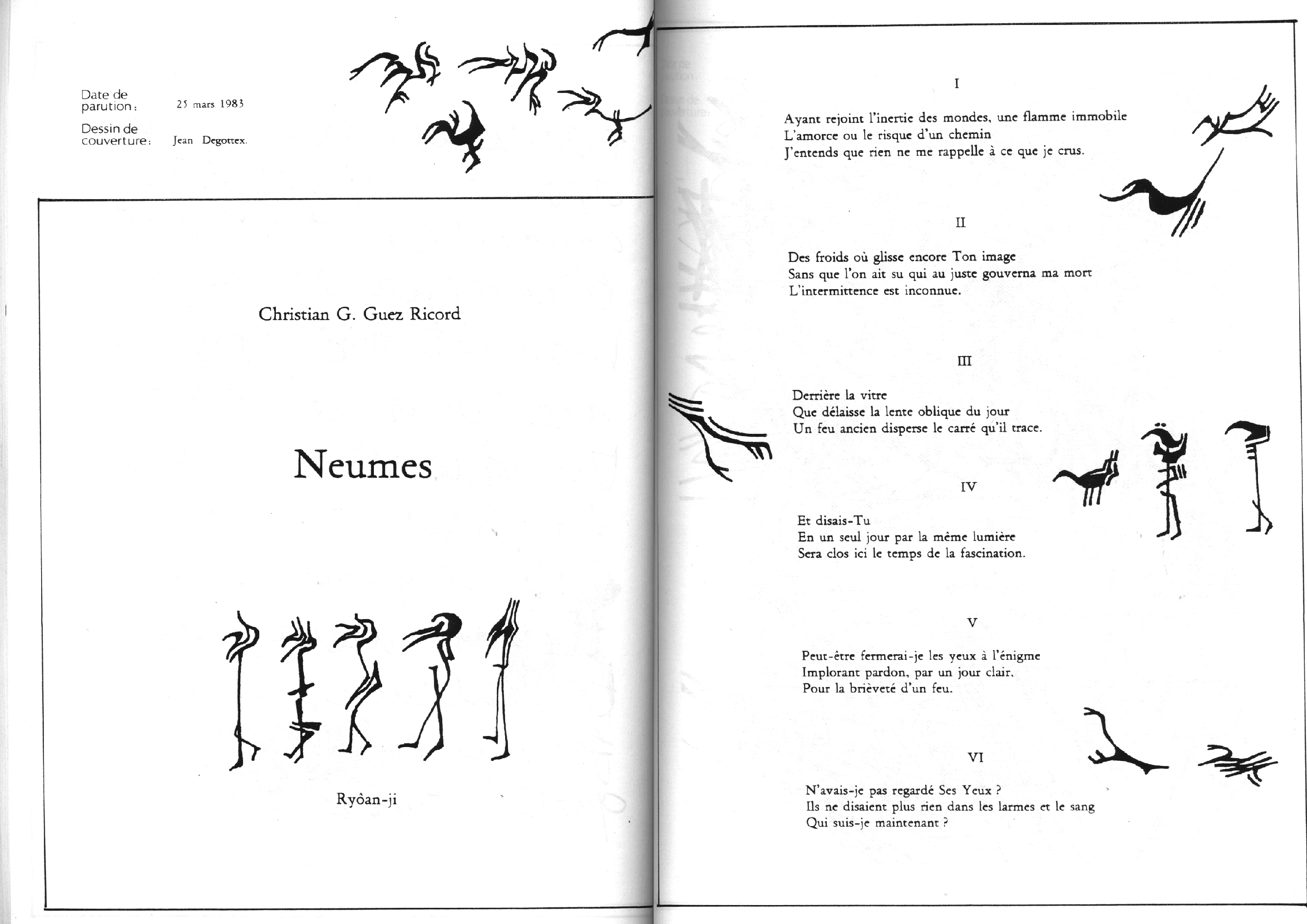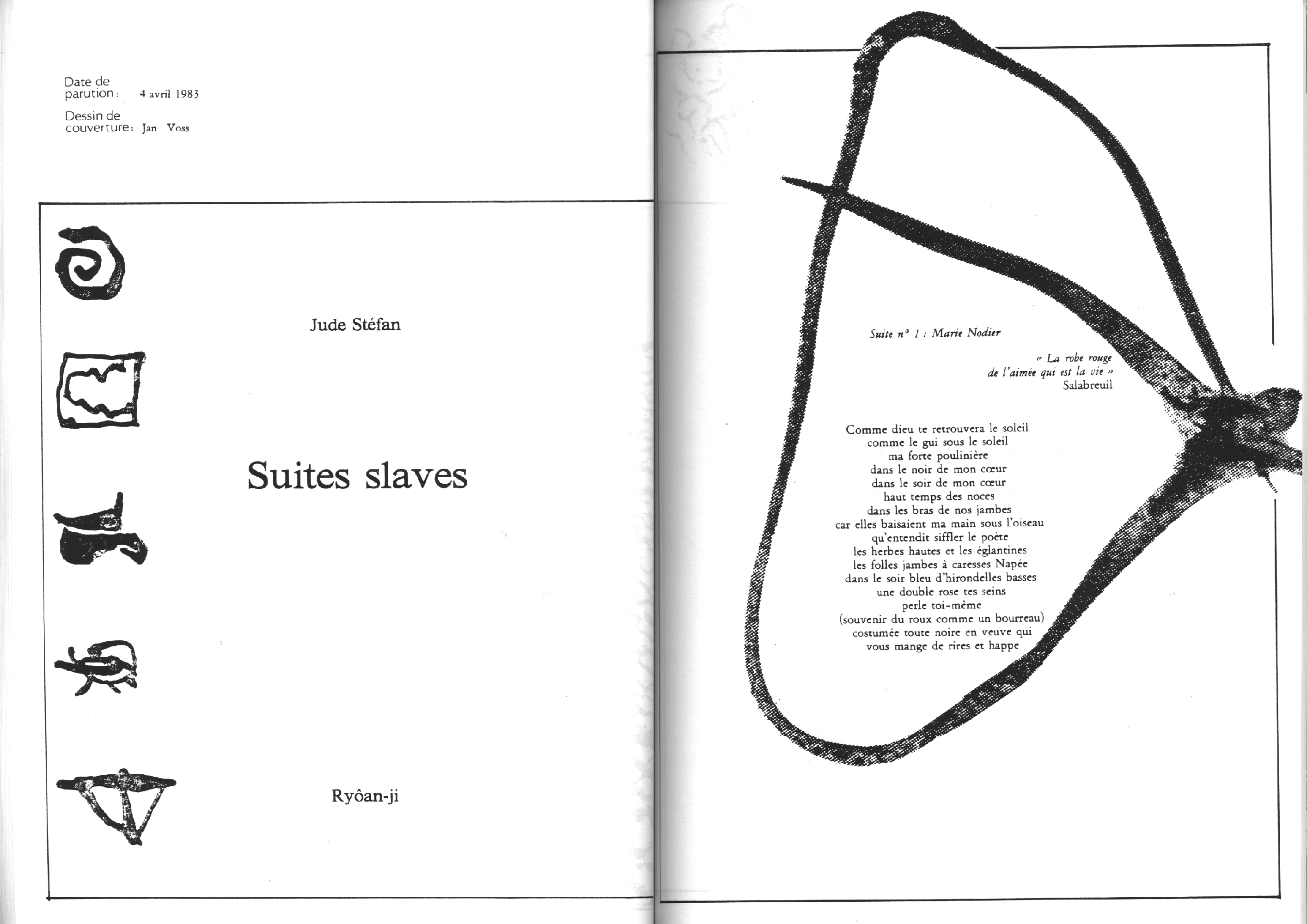 Catalogue d’exposition, numéro spécial de la revue Banana Split. Introduction de Marc le Bot – réunion de Ryoan-Ji et Banana Split, oeuvres de Jean-Jacques Ceccarelli, Olivier Debré, Jean Degottex, Fred Deux, Pierre Klossowski, Bernard Moninot, Roman Opalka et Jan Voss. In-4 (295×210), broché, 85 pages papier machine.